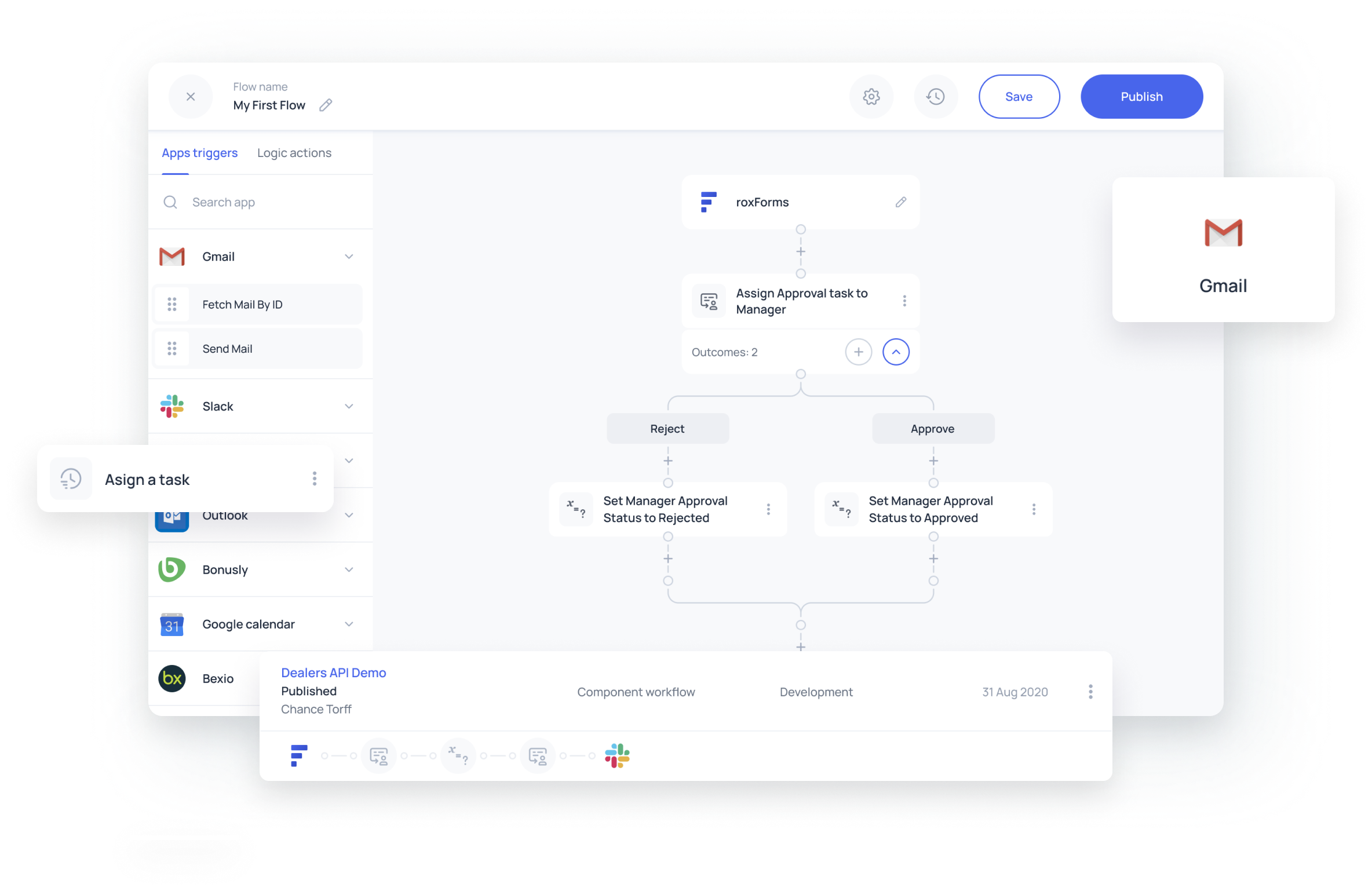 Automate business workflows by connecting your apps with RoxFlow. Build smart integrations to break the information silos in your business.